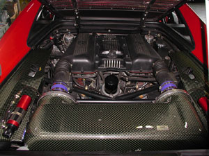 | 機能も兼ね備えた綺麗なエンジンルームを演出してみませんか? K&Nのラムチャージャーです。 手前の赤い筒はJRZサスペンションの別タンクです。 |