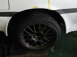 試乗していた時から気になっていたのですが 古臭いセッティングとショックが抜けていると思われる挙動 TEINは全長調整式でF12キロ/R6キロのバネが組まれていました。 アライメントは左右でバラバラになっています。 スタビは、社外品がついています。 |