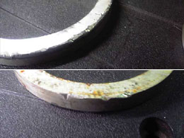 他所様でリアローターを交換した際に、「リテーナーが外れていたので点検して欲しい」との事でしたが… リテーナーが変型してました。壊れてる部品を無理矢理付けても治りませんよ |