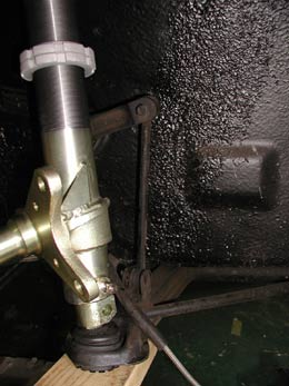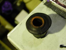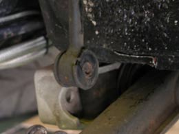 動きがとっても渋かった、フロントスタビの受けです。 変型と経年変化が進んでいました。 |