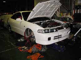 | HONDAインテグラtypeR(96spec) ダートトライアルでのアタックを目的に製作しています。 レギュレーションはN車両で、エンジン不可、ピロ禁止、車高調整OK、補強は少しOK軽量化禁止という内容です。 お客さまに新車の様な綺麗な車両を購入してもらいました。 内容はガード類の取付、ダンパーの装着、ブッシュ強化、マウント強化、クラッチ周辺OH&グレードアップ、10Pロールバー等です。 |