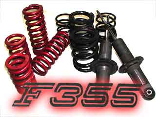 | F355のチューニングメニューに「チャレンジの脚」があります。 しかし、非常識な乗り心地です。サーキットスペックだからという言い訳が通用するのかどうか… 路面を喰わせる脚をプロデュースする私どもは「?」をつけます。 |