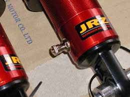 スポーツラインでのこだわり、ガス圧調整バルブです。 これはリア側 |