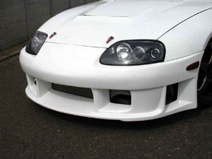 toyota A80 フロントバンパースポイラ: テストを重ねて出来た逸品です、ダウンフォースも強く、フロア面も成型され スプリッターも装備しています。 これで高速コーナーでも自信を持って走れます。 110000円 |