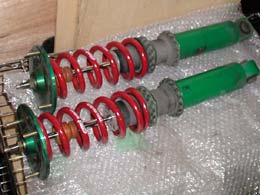試乗していた時から気になっていたのですが 古臭いセッティングとショックが抜けていると思われる挙動 TEINは全長調整式でF12キロ/R6キロのバネが組まれていました。 アライメントは左右でバラバラになっています。 スタビは、社外品がついています。 |