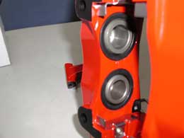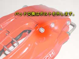 バックブレースでパッドを抑えます。 ボルトで締め付ける事により剛性を出します。 |