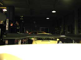 ウイングの高さを調べます。 具体的には屋根との相関関係ですが… 別にレースに出るわけで無いのですが、高すぎても低すぎても、サスセッティングに問題が有りますので… |