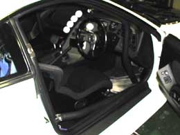 エンジンはHKSの金プロ、インタークラー&ブーストアップです。 オイルクーラーも装着されています。 エンジンは問題なく吹けます。良く出来てます。 タービンはノーマルですが、けっこうパワフルです。 ターゲットが筑波なので、このままで行きます。 |