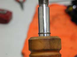 ピロアッパーに付属されているカラー類をダンパーの形状に合わせて加工をします。 Cクリップの箇所はC面加工をして、クサビ効果を出します。 内径はロッドの寸法に合わせたゼロ交差です。 |
