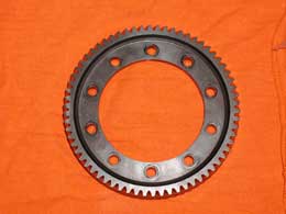 | 今回はファイナルギアの交換を行います。 1〜2速(3.230〜2.105)が65%のステップ率を持ち、1〜2速の加速は期待できない、おまけに1stの受持ち範囲が67km/hにもなるので、ローギアードにファイナルを変更して1stギアを使わないようにする。(クロスミッションはレギュで規制されていますので) 96specのノーマルは4.400です。98スペックは4.785です。 今回は4.929にします。(5.000が廃盤の為) |