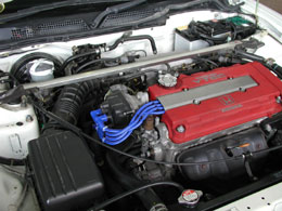 ブローしていた排気温度センサを交換します。 触媒は無事の様です。 劣化していたプラグコードはウルトラの新作、ブルーに変更しました。 |